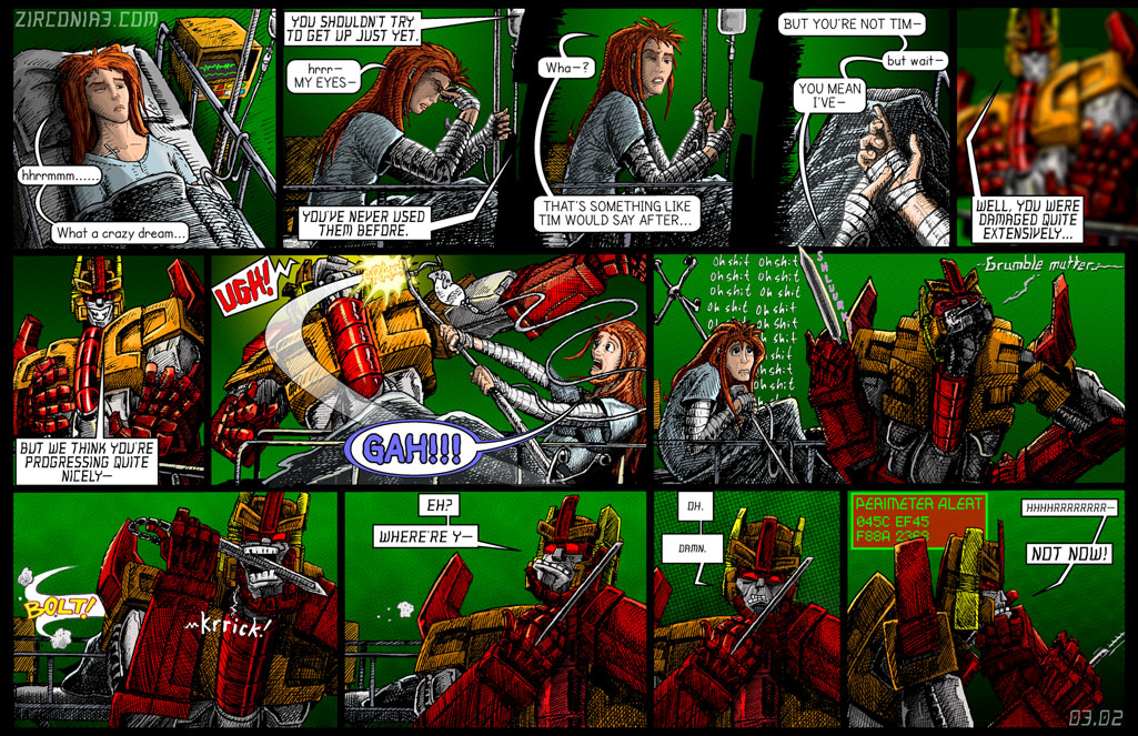 Yeah, again with the redrawing of faces. I clearly had no idea what I was doing when I started this. Also, speaking from personal observations made since I first published this page, hospital room walls are not that green. Hopefully, I got the hang of this quickly, and from here on out, I shouldn't really have to revise artwork.